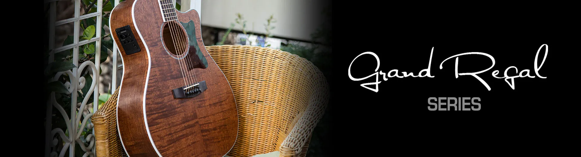 Серія акустичних гітар Grand Regal заснована на базі популярної форми корпусу Grand Auditorium, яка менше ніж звичний дредноут, але крупніше концертних і парлор моделей. Збільшена до 45мм довжина нульового поріжка полегшує пальцеве виконання. Завдяки збалансованому звучанню, привабливому зовнішньому вигляду і вбудованому звукознімачу інструменти Grand Regal безумовно стануть відмінним вибором для будь-якого гітариста.