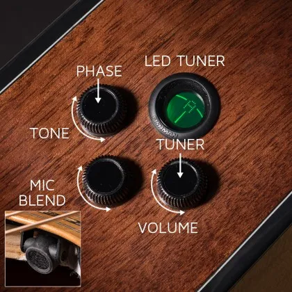 Система Fishman Flex Blend із витонченим сучасним дизайном та інноваційними технічними рішеннями пропонує широкі можливості контролю звучання, а також вбудований тюнер. Весь функціонал (Volume, Tone, Phase, Blend і Tuner) доступний за допомогою усього трьох ручок. Регулятор Tone дозволяє адаптувати тембр інструменту як для фінгерстайлу, так і для гри медіатором без проблем з акустичним зворотним зв'язком (feedback) та інших неприємних призвуків, зберігаючи при цьому натуральний акустичний характер.