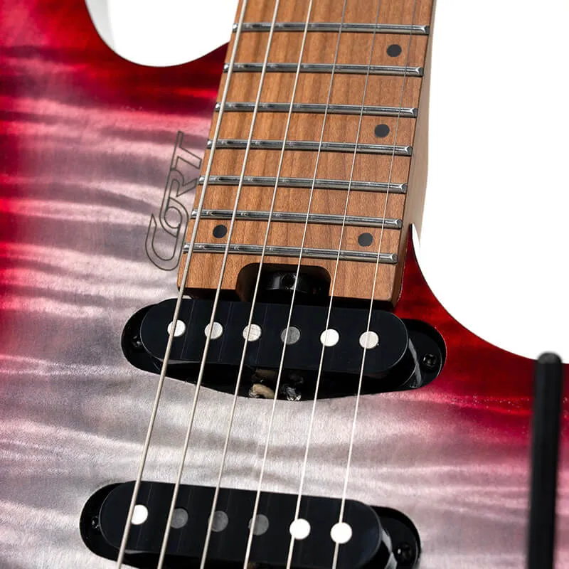 Гриф з п'яти частин обпаленого клена та горіха забезпечує стабільність та зручність гри. У поєднанні з накладкою грифа з обпаленого клена з змінним радіусом та профілем Ergo V це високопродуктивна платформа, створена для серйозної гри.