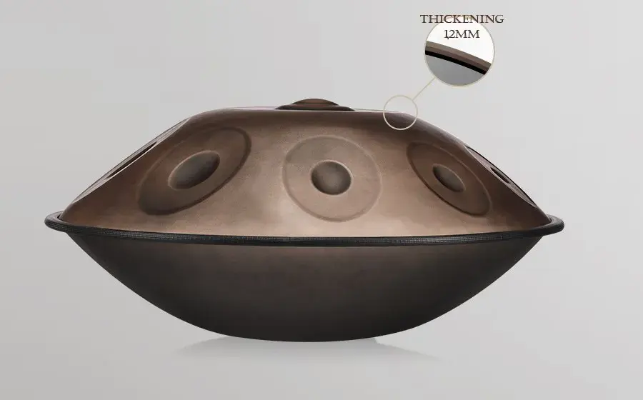 Handpan HLURU 22" з нержавіючої сталі з бронзовим покриттям та строєм D Kurd (9 нот) — це інструмент преміум-класу, що поєднує глибоке звучання, довговічність та професійну ручну настройку. Він підходить як для початківців, так і для досвідчених музикантів, даруючи чистий і виразний звук з кожним дотиком.