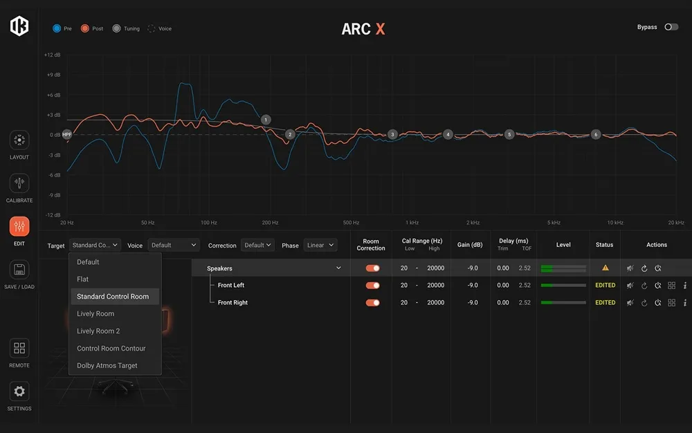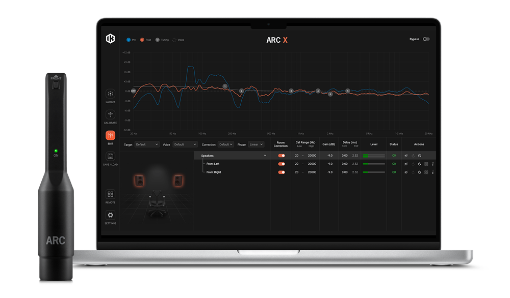Будь-яке приміщення впливає на звук. Стіни, стеля, підлога та меблі вносять спотворення й резонанси, які ускладнюють об’єктивну оцінку міксу. ARC X усуває ці фактори завдяки високоточним акустичним вимірам і вдосконаленій корекції в частотній області, створюючи індивідуальний профіль АЧХ, який передає звук правдиво та природно.