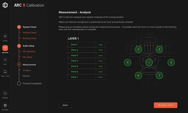 Вбудована система ARC X автоматично калібрує монітори під конкретне приміщення за допомогою комплектного MEMS-мікрофона, усуваючи вплив кімнати та дозволяючи чути сам матеріал, а не відбиття стін.