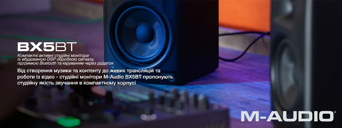 Активні настільні студійні монітори M-Audio BX5BT із DSP-обробкою забезпечують звук професійного рівня з сучасною зручністю у використанні та ідеально підходять для музикантів, композиторів, геймерів, творців контенту та відеомонтажерів. Ці компактні 5-дюймові монітори мають загальну потужність 120Вт із біампінгом, поєднуючи кевларовий вуфер і високоточний DSP-кросовер для відтворення чистого, деталізованого звучання з розширеним басовим діапазоном.