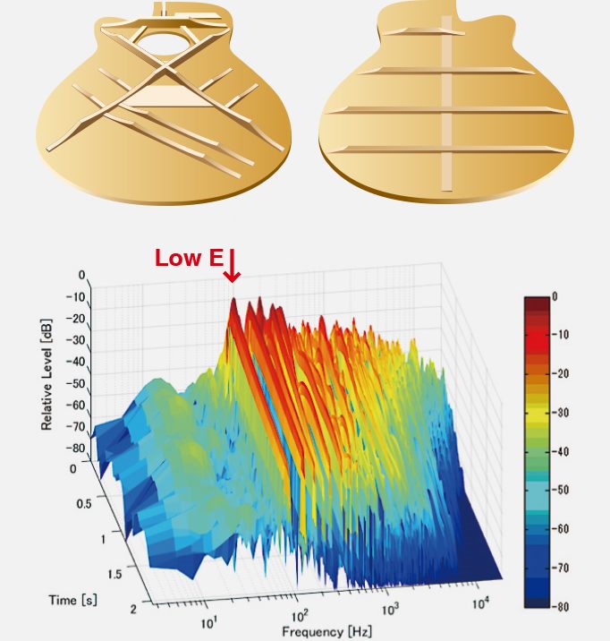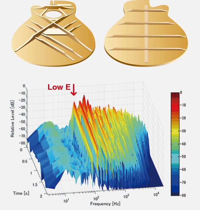 Завдяки передовим акустичним аналізам науково-дослідницького відділу Yamaha звучання гітар серії A було оптимізоване і стало голоснішим і потужнішим в діапазонах низьких і середніх частот. Цей аналіз призвів до розробки нової скалопованої системи зв'язок для верхньої деки і укорочених "пружин" для нижньої деки.