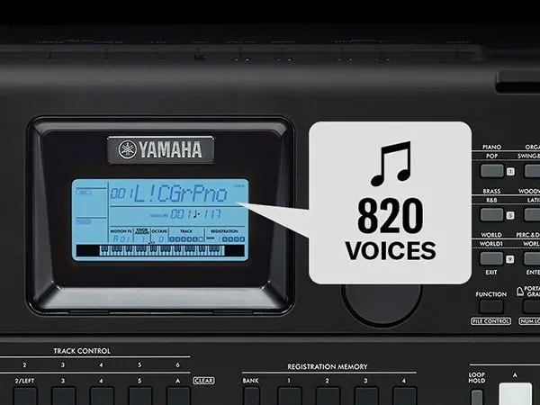 PSR-E473 розширює та доповнює можливості попередніх моделей завдяки збільшеній ємності внутрішньої пам’яті, що дозволяє Yamaha додати в нього більше інструментальних тембрів з високою деталізацією. Насолоджуйтесь 820 реалістичними, виразними звуками інструментів з професійною якістю звучання.