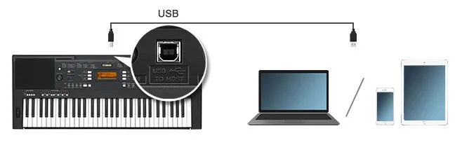 PSR-A350 обладнаний USB роз'ємом, який дозволяє підключитися до комп'ютера для передачі інформації. 10 користувацьких слотів дають вам можливість зберігати і використовувати додаткові стилі. Крім того, ви можете підключити інструмент до iPhone, iPod touch або iPad* для того, щоб розширити можливості вашого інструмента.