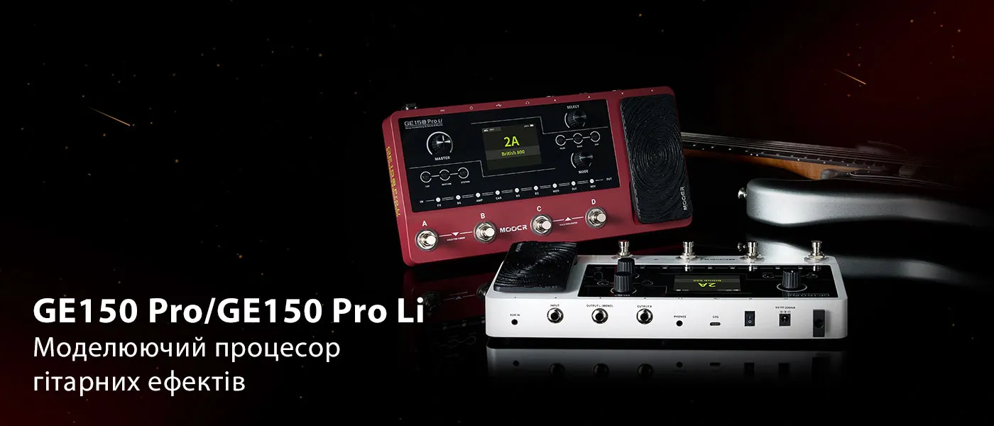 В 2019 году MOOER представили доступный гитарный процессор GE150, быстро получивший признание среди музыкантов благодаря широкому спектру моделей усилителей и разнообразным эффектам в компактном формате. Однако прогресс в мире гитарных педалей не останавливается и в компании поняли, что пользователям нужен инструмент с большей гибкостью и возможностями управления. Так появилась серия GE150 Pro, модель MOOER GE150 Pro Li стала ее усовершенствованной версией с уникальными особенностями, такими как встроенная литиевая батарея и яркий красный дизайн.