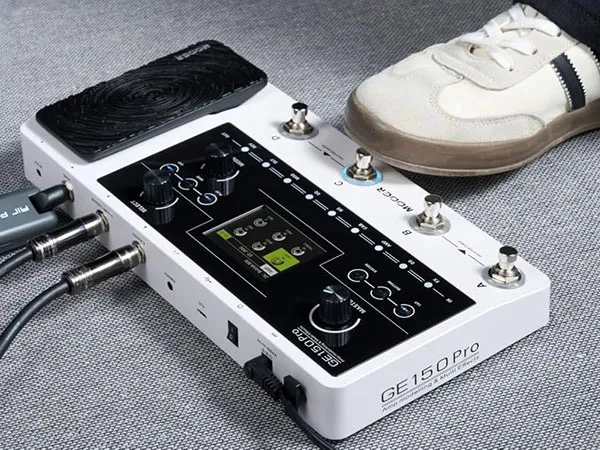 MOOER GE150 Pro Li оснащен четырьмя переключателями, интуитивным интерфейсом и 2,8-дюймовым ЖК-экраном, а также встроенной педалью экспрессии, ставшей важным дополнением в серии GE. Эта педаль позволяет динамически управлять параметрами эффектов, добавляя выразительности вашей игре, а функция "прикосновения" позволяет переключаться между режимами "Экспрессия" и "Громкость", что делает ее универсальным инструментом для живых выступлений.
